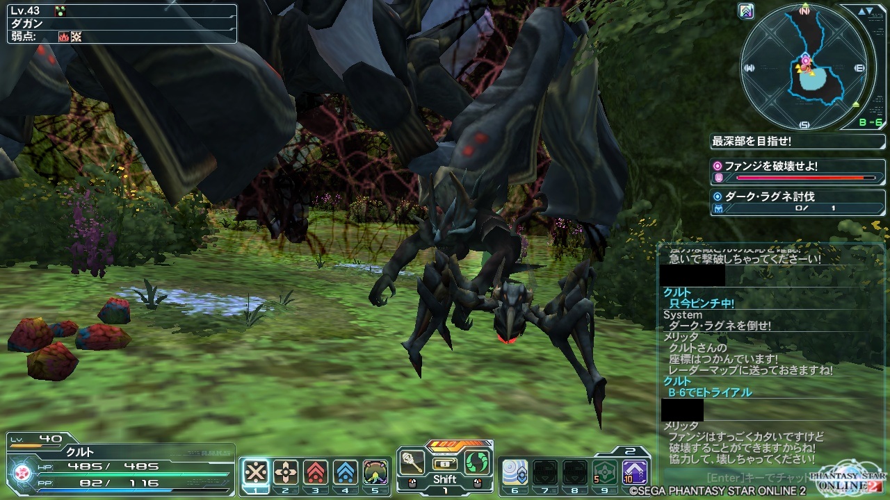 チャットで助けてと叫ぶ暇もなく、必死に回避しつつ、ファンジを攻撃。